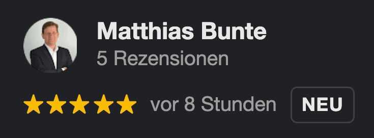 "Bin sehr Zufrieden mit der erbrachten Leistung. Vereinbarungen wurden eingehalten, Verspätungen wurden angekündigt und der Kontakt war sehr freundlich."